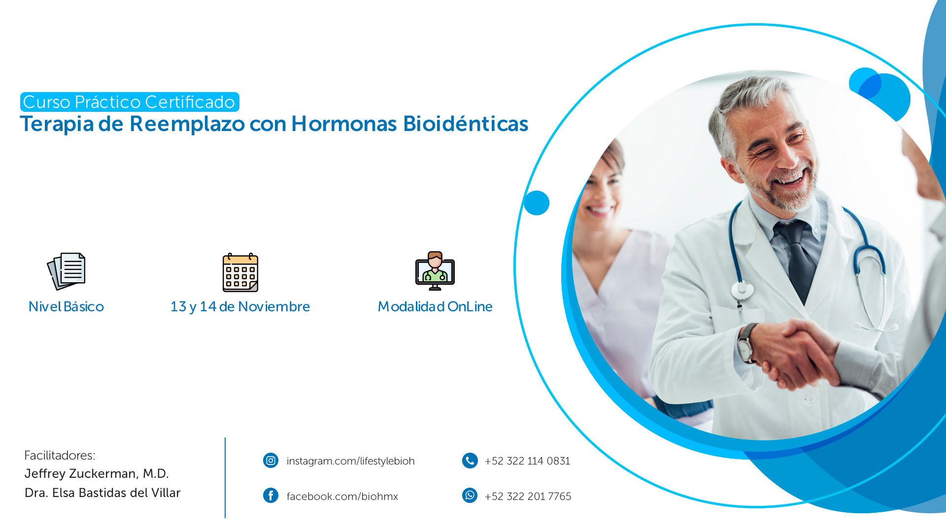 Lifestyle Biohealth América presenta este, curso práctico certificado, nivel básico, cuyo objetivo es ofrecer a los profesionales de la salud una introducción práctica en la evaluación del paciente, conocer los síntomas de deficiencia hormonal y formular el reemplazo de hormonas bioidénticas, desde una perspectiva personalizada, funcional e integrativa.