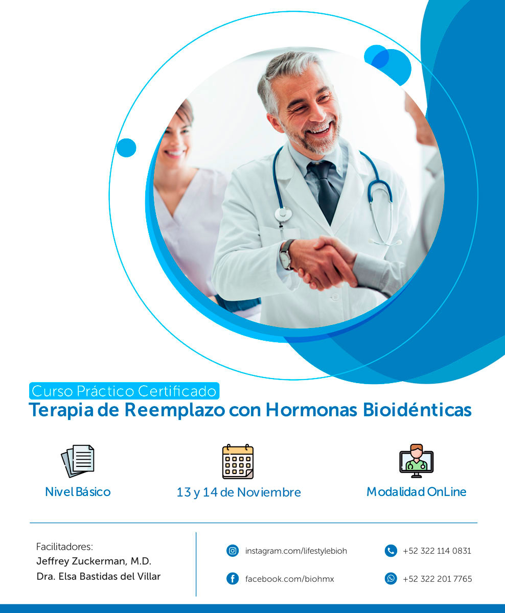 Lifestyle Biohealth América presenta este, curso práctico certificado, nivel básico, cuyo objetivo es ofrecer a los profesionales de la salud una introducción práctica en la evaluación del paciente, conocer los síntomas de deficiencia hormonal y formular el reemplazo de hormonas bioidénticas, desde una perspectiva personalizada, funcional e integrativa.